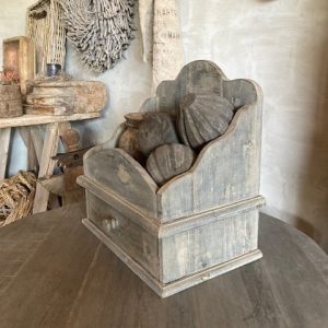 Deze charmante gruttersbak is een echte aanwinst voor je landelijke keuken of woonruimte. Voorzien van een handige lade en een open vak, perfect om kleine items stijlvol in op te bergen of decoratief neer te zetten.