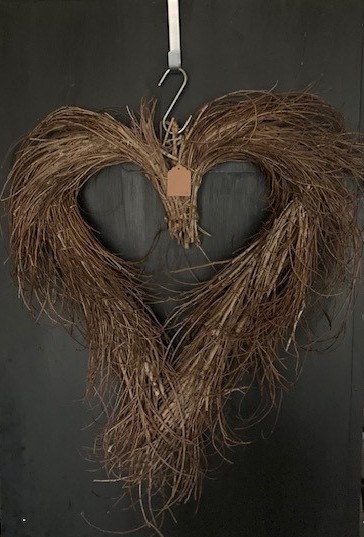Dit robuuste hart gemaakt van grove takken brengt meteen warmte en sfeer in je interieur.