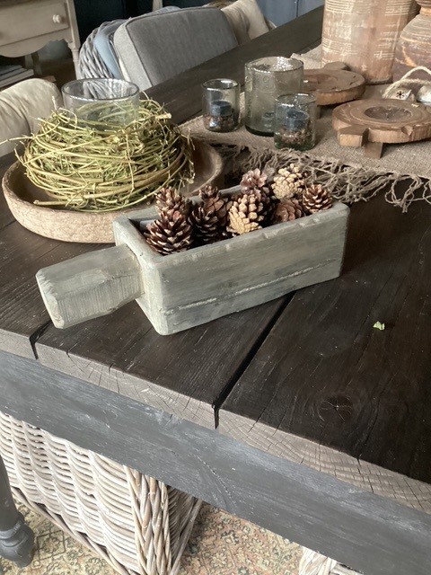 Deze robuuste houten schaal met handvat is een echte sfeermaker! Super gezellig op tafel met kaarsen of gewoon puur natuur.