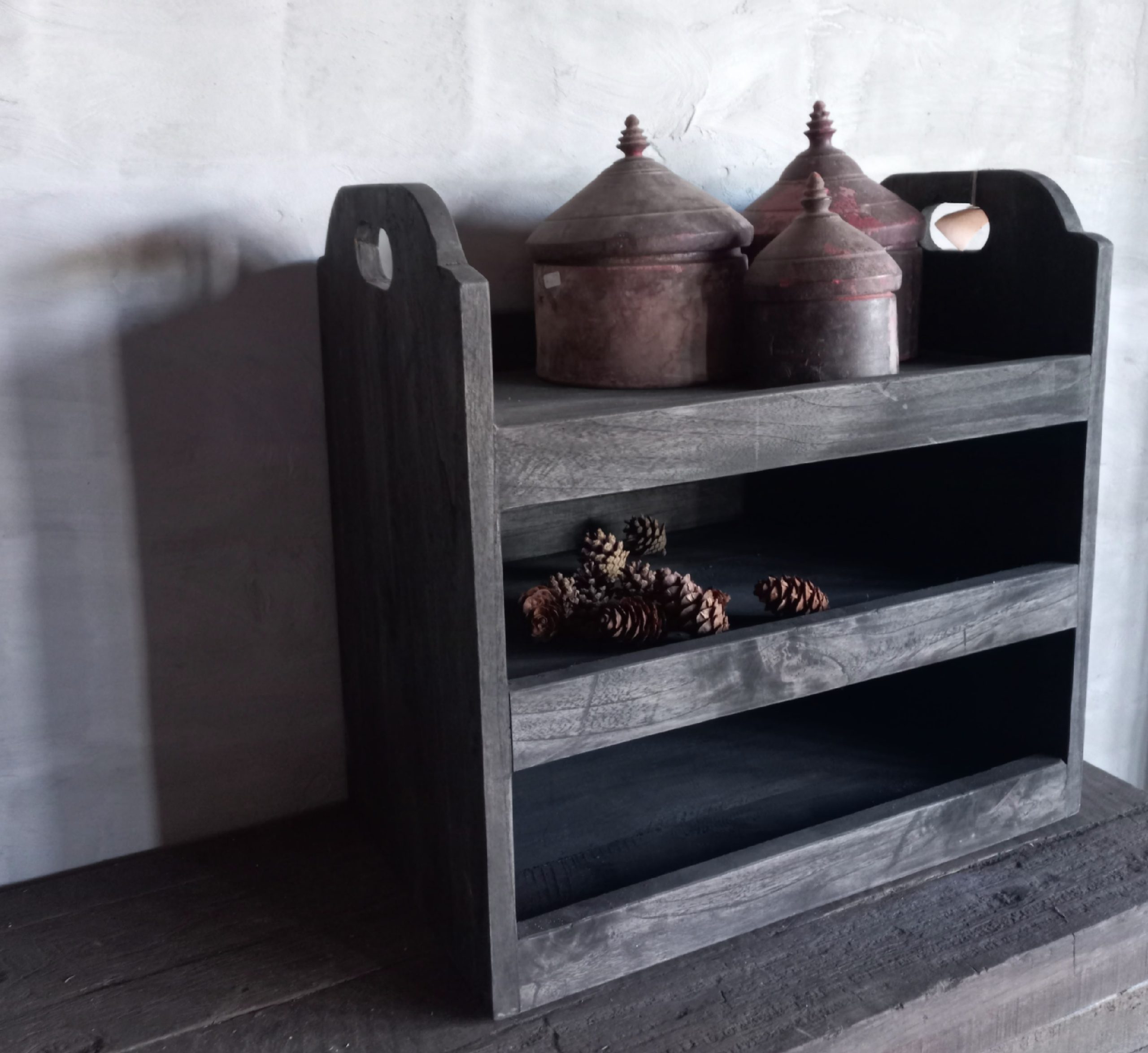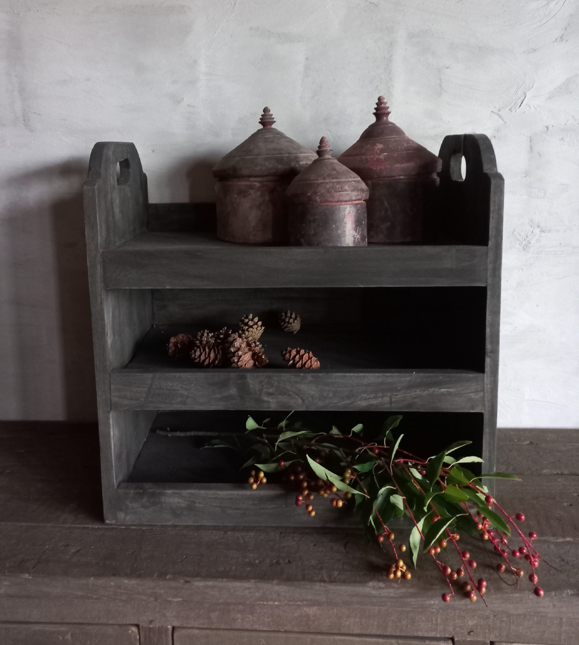 Uitgevoerd in de kleur Old Barn – een warme, bruine kleur – wat het rekje een authentieke en landelijke look geeft.