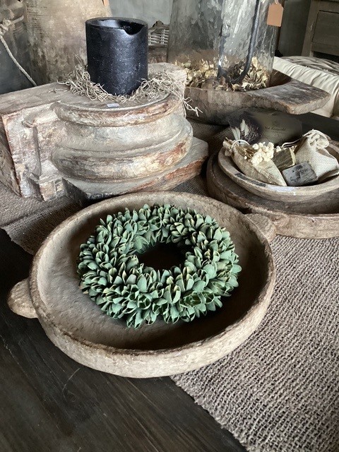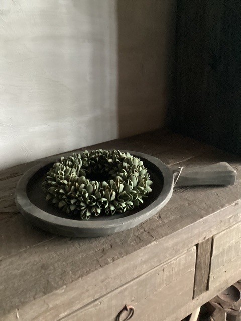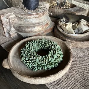 Deze Bakuli wreath in laurel green is een prachtige, natuurlijke krans die direct sfeer brengt in je interieur.
