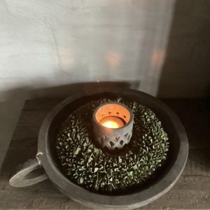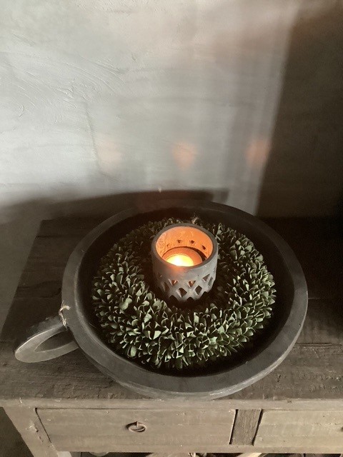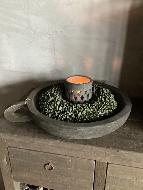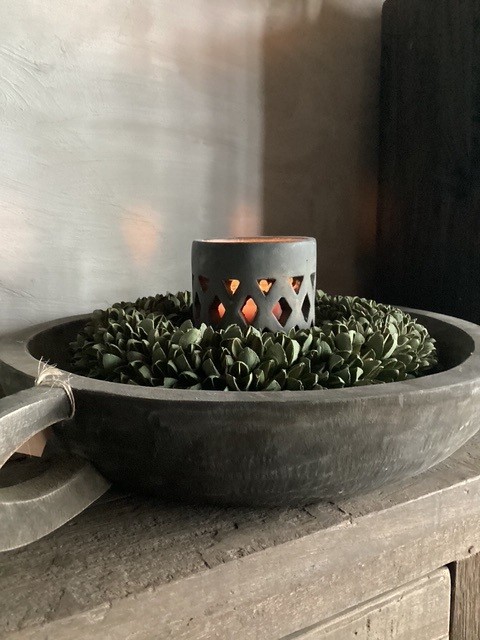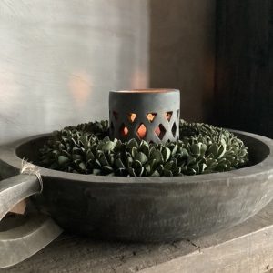 Met zijn subtiele groene tinten en verfijnde structuur is hij een echte eyecatcher aan de muur, deur of gewoon liggend op tafel met een kaars erin.