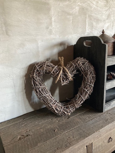 Breng warmte en sfeer in huis met deze prachtige krans in de vorm van een hart. Gemaakt van natuurlijke materialen en perfect voor aan de muur, deur of als tafeldecoratie. Een liefdevol accent, het hele jaar door.