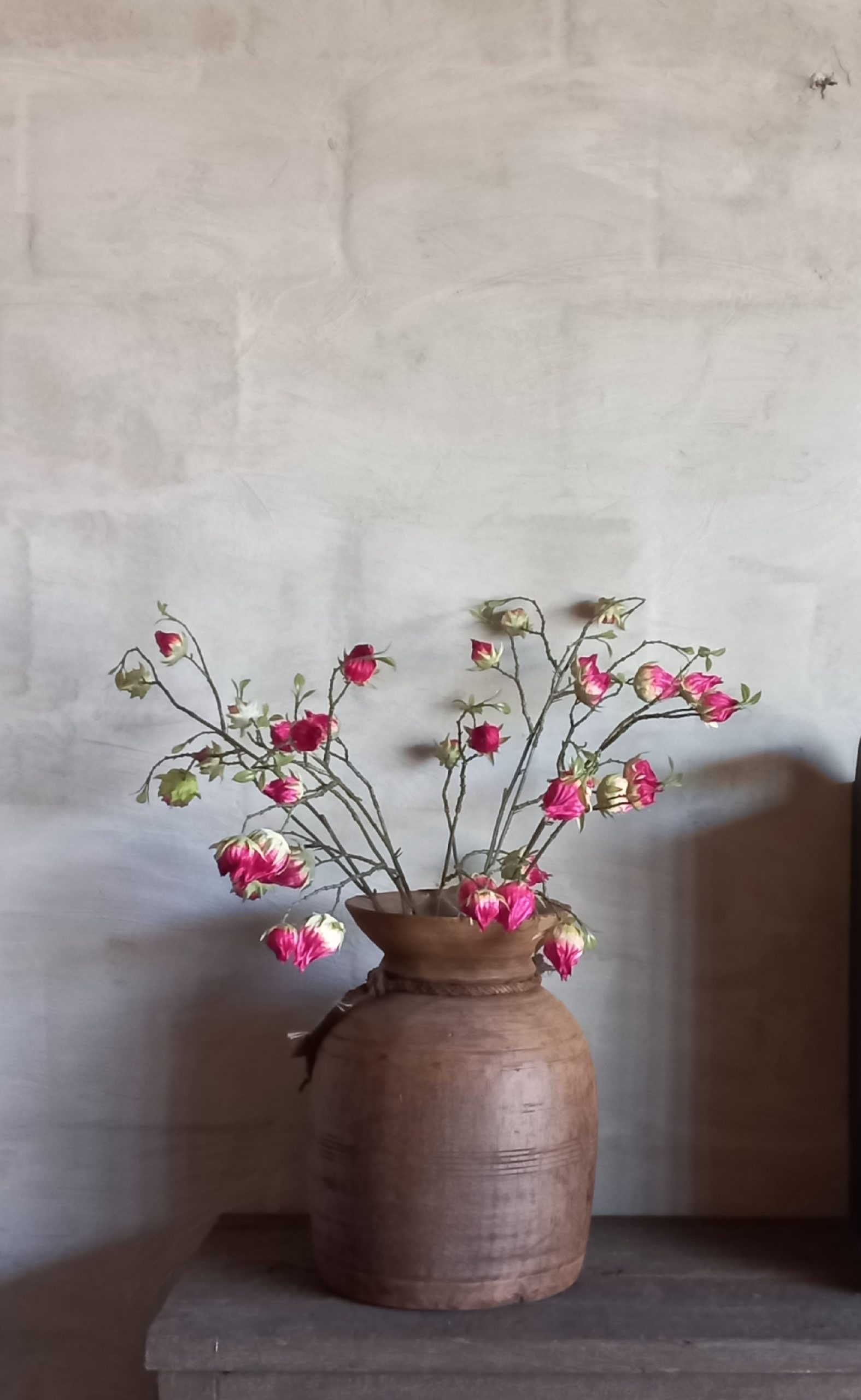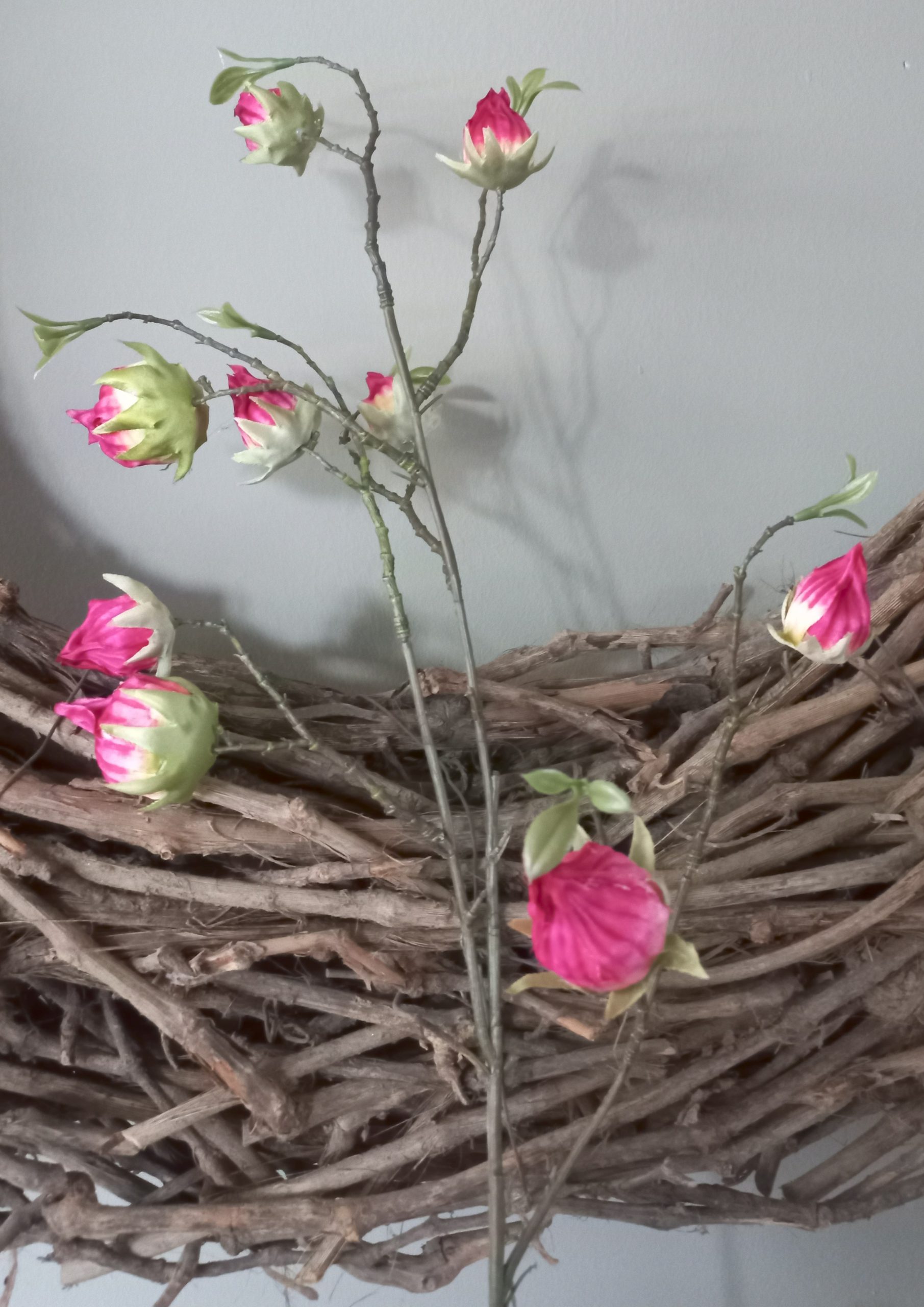 Breng kleur en elegantie in je interieur met deze roze kunstbloem.