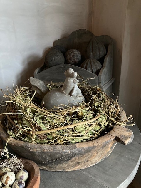 De combinatie van de kip, schaal en krans maakt ’m extra gezellig.