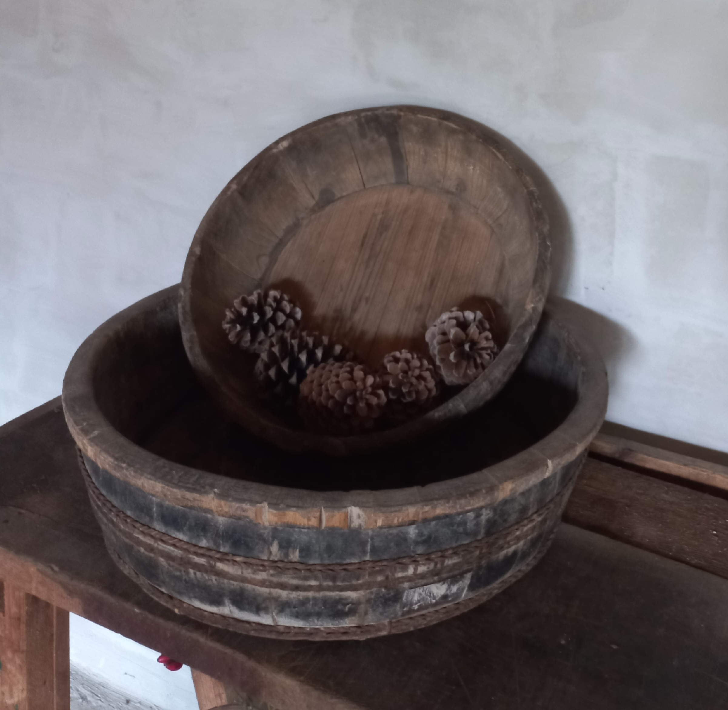 Deze originele olijfbak is een tijdloos accessoire vol karakter. Ooit gebruikt voor het oogsten van olijven, nu een prachtig decoratief stuk in elk interieur. De doorleefde houtstructuur en authentieke vorm maken hem uniek.