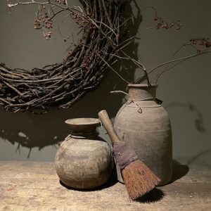 De kruik past perfect binnen een landelijk, stoer en sober interieur en is prachtig als decoratief object op zichzelf of in combinatie met andere natuurlijke materialen. De bijpassende deksel maakt het geheel compleet en versterkt het robuuste karakter.