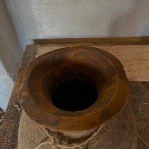Deze stoere kruik valt op door zijn uniek ijzeren detail. Net even anders dan een standaard kruik, waardoor elk exemplaar zijn eigen karakter en charme heeft. Een uniek woonitem dat sfeer en persoonlijkheid toevoegt aan elk interieur.