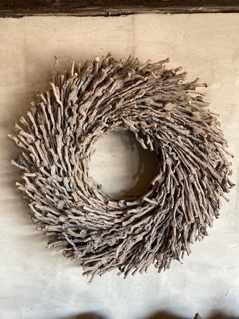 Een subtiele, landelijke krans vol kleine details die zorgen voor een sfeervolle, natuurlijke uitstraling. Mooi op een schaal.