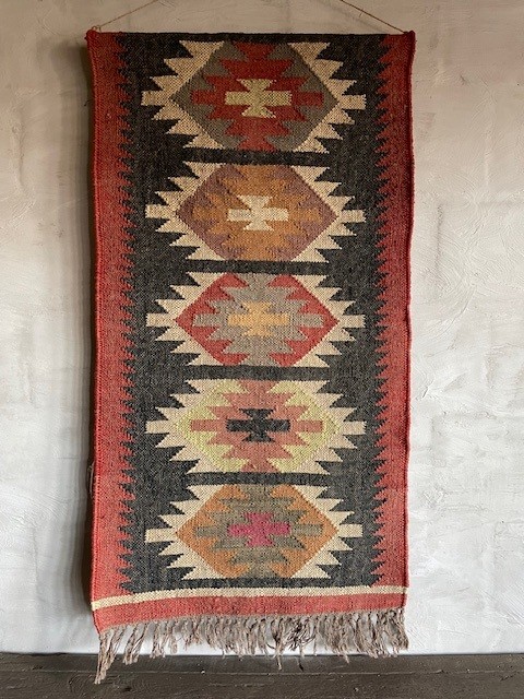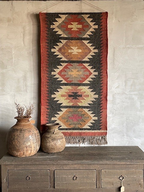 Dit wandkleed in landelijke stijl geeft direct sfeer.