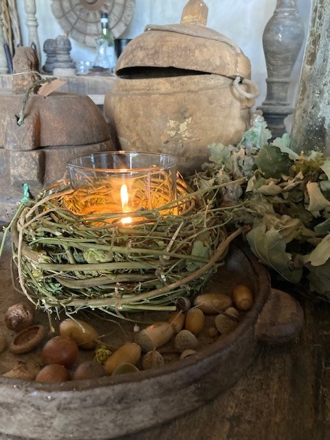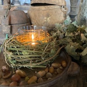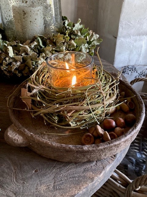 Deze stoere krans heeft een prachtige ruwe look, gemaakt van natuurlijke materialen zoals berkenblad en takken.